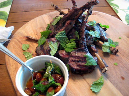 Preheat grill. Grill lamb chops, turning only once, about 2 minutes per side. Plate lamb and serve with lemon balm pesto and the garlic confit.