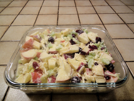 Use whatever eating apples are in season: Newton or Granny Smith for green; McIntosh, Delicious or Spartan for red. Swiss, Colby or brick cheese go well with this salad. Toast the almonds in a 350º oven for 10 minutes for a better flavour.