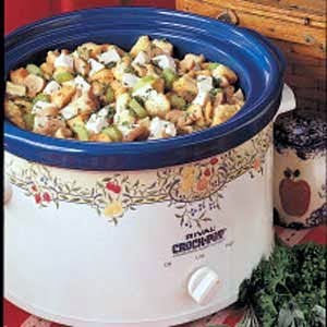 In a 5-qt. slow cooker, layer half of the stuffing and chicken; repeat layers. Cover and cook on low for 4-1/2 to 5 hours or until a meat thermometer inserted into the stuffing reads 160°.