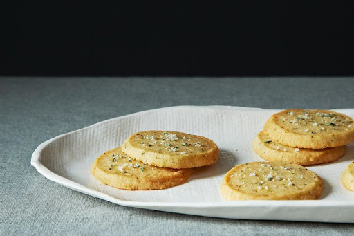 Cut into thin slices and place them on a parchment-lined baking sheet. Cook for 12 to 15 minutes, until golden on top. If you want to add rosemary salt, pound the needles in a mortar with a pinch of salt and add a small sprinkle onto the sables when they come out of the oven. Cool on a wire rack to let them crisp up.