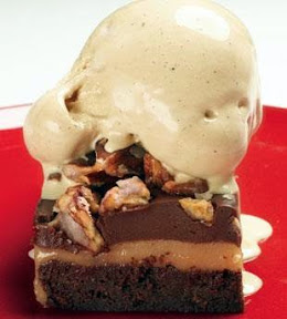 Layered Brownies with White-Chocolate Caramel and Cacao Nib Gelato