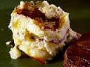 Using a wide spatula, transfer the ring of potatoes to each plate. Holding the edge of the hot ring with a kitchen towel, cut around the potatoes to loosen them. Remove the ring and serve hot.