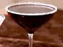 Wet rim of martini glass on a damp paper towel and dip into cocoa mix; set aside.