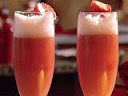 Place strawberries and simple syrup into a blender. Strain strawberry mixture. Pour into glasses and top with Champagne. Garnish each with a long-stemmed strawberry.