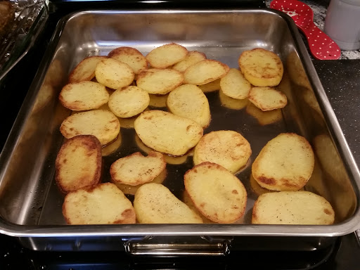 • 3 pounds Yukon Gold potatoes, peeled and sliced 1/2 inch thick
