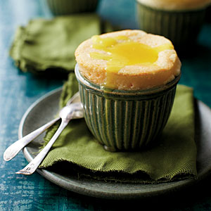 4. Bake at 400° for 10 minutes; reduce heat to 350°, and bake 4 minutes or until soufflés rise and are set. (Center should be slightly loose when shaken.) Dust with powdered sugar. Serve immediately with remaining lemon curd.