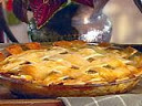 Roll out pie crust, cut into 1/2-inch wide strips and cover dish in lattice design, then brush dough lightly with egg.