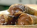 Bake in oven for 9 to 10 minutes, or until bubbly and golden brown. Quickly invert cookies onto another cookie sheet, and wrap each cookie around the greased handle of a wooden spoon or a metal cone. When cookie is set, slide cookie off spoon or cone; cool on a wire rack. Fill cookies with filling. To store: Place unfilled cookies in a single layer in an airtight container; cover. Store at room temperature in a cool, dry place for up to 3 days or freeze unfilled cookies for up to 3 months. Thaw cookies and fill.