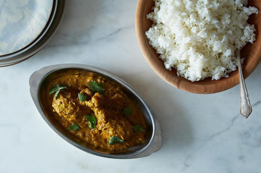 Add the cashew cream to the pot once the meat is very tender. Keep simmering for another couple of minutes, until the sauce has the desired consistency (I like mine quite thick). Check for salt. Garnish with cilantro and serve immediately with steamed rice. Enjoy!