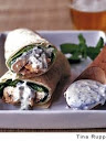 4. To serve, arrange slices of chicken in a flour tortilla, spoon some of the dressing on top, roll up, and eat with your fingers. You may also stuff some romaine or leafy lettuce and shredded carrots in the tortilla with the chicken. Serve with a side of vegetables or a salsa.