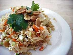 4. You can eat this right away, but it's even better if you can let it sit in the fridge for an hour or two. Whenever you decide to serve it, garnish it with the reserved peanuts and cilantro.