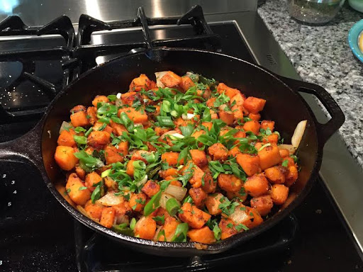 Spicy Sweet Potato and Fire Roasted Poblano Hash