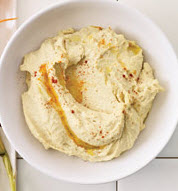 In a food processor, combine the chickpeas with the liquid, garlic, lemon juice and tahini and puree to a chunky paste. Scrape down the side of the bowl. Add 2 tablespoons of olive oil and the paprika and puree until smooth. Season the hummus with salt, drizzle with olive oil and serve with pita chips or crudités.