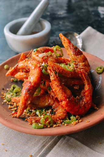 Remove any excess oil from the wok, so there's only a tablespoon or so left (you don’t want to use too much oil at this stage, as this is a “dry” dish). Add the peppers to the wok. Turn off the heat, and add the garlic back to the wok, stir-frying everything together for a minute. Add the shrimp to the wok, and gently toss everything for 10 seconds, sprinkling over a bit more of your salt and pepper mixture. Serve!
