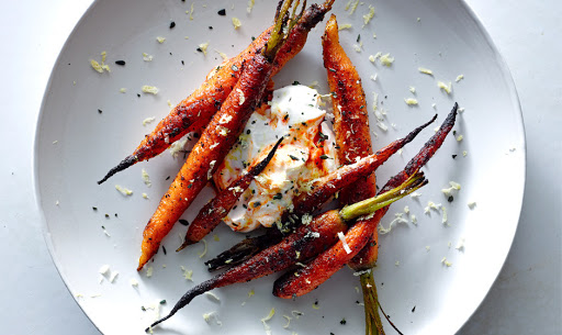 Heat remaining 3 Tbsp. oil in a large skillet, preferably cast iron. Working in 2 batches, cook carrots, turning occasionally, until deep brown all over, 6–8 minutes; season with salt and pepper.