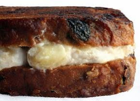 - 2 (1/2-inch-thick, 3 1/2–by–3 1/2–inch-long) slices cinnamon raisin bread