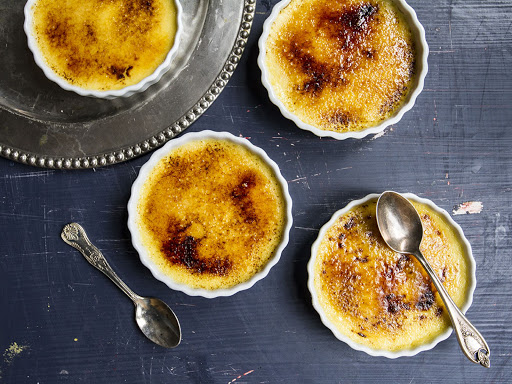 To serve, sprinkle about 1 tablespoon of the remaining sugar evenly over the surface of each custard. Using a kitchen blowtorch (amazon.com), the sugar until bubbly and dark brown. Let the custards stand for 1 minute to allow the sugar to harden before serving.