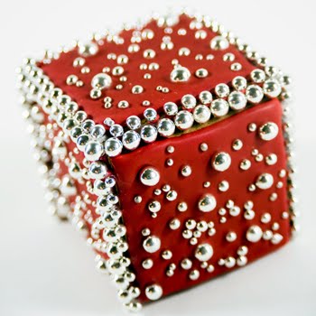 2. For each box, place the larger 3.5” square, smooth side up, on the counter or work surface. Lay a smaller 3” side piece, smooth side down, on each of the four sides of the base. Pipe white Royal Icing along the sides and lower edges of each of the side pieces. Pipe the white Royal Icing along each edge of the base. Bring the two adjacent sides of the box up so that the corners meet and the lower edge is sitting on the base of the box. Hold the sides in place for 30 seconds or until they will stand upright on their own.