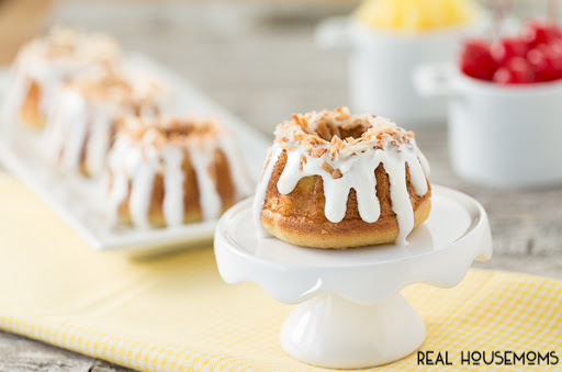 Drizzle cakes with glaze and sprinkle with toasted coconut