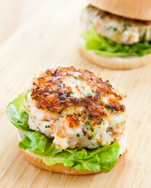 Be sure to use raw, not cooked, shrimp here. Dry the shrimp thoroughly before processing, or the burgers will be mushy. Handle the burgers gently when shaping and grilling; if over handled while being shaped, the burgers will be dense and rubbery, and if handled roughly during cooking, they will break apart.