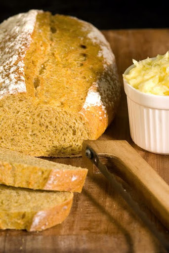 Place dough onto parchment paper dusted with cornmeal. Allow to rest for 1 hour. About half way through the rising process turn on the oven to 425F and place your baking stone into the oven and a cast iron skillet on the bottom of the stove to heat up. After the bread has risen remove the cling wrap and sprinkle a little bread flour on top of the loaves. Using a very sharp knife cut long slashes on top of the loaves. Place the loaves onto the baking stone and pour a cup of boiling water into the cast iron skillet to create some steam. Close the door and allow to bake for 30 - 35 minutes. Remove from oven and cool on a wire rack.