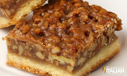 A caramelized pecan pie set atop a shortbread crust is the absolute perfect nut bar.