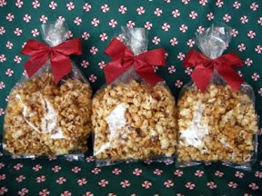 Preheat oven to 250 degrees. Grease two large baking sheets. In heavy saucepot, combine margarine, honey, brown sugar, and salt. Turn on medium heat and stir continuously until it comes to a boil. Stop stirring and let boil, undisturbed, for three minutes. Remove from heat and stir in baking soda and flavorings. Place 1/2 of cooled popcorn in a large dishpan (I do mine in two batches) and pour half caramel sauce over. Stir until evenly coated. Spread onto baking sheet and repeat with remainder on another baking sheet.