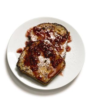 Dust the bread with the sugar. Dividing evenly, top with the syrup-jam mixture.