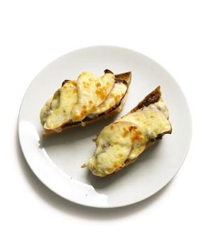 Dividing evenly, top with the apple butter, apple, and Cheddar. Broil until the Cheddar has melted, 2 to 3 minutes.