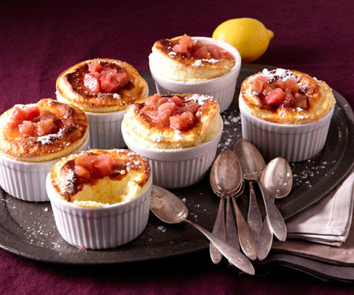 Lemon Soufflé with Rhubarb-Vanilla Compote
