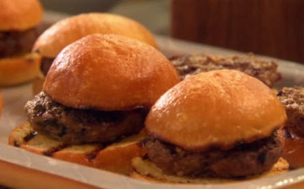 Preheat the grill. In a medium bowl, mash the black beans, 1 tablespoon olive oil, and garlic powder with a potato masher or fork until very creamy. Gently mix the black bean mixture with the ground beef. Season the mixture liberally with salt and pepper. Divide the mixture into 8 equally portioned thin patties. Using a pastry brush, lightly coat the outside of the patties with mustard. Lightly brush the grill with the oil and place the burgers on the hot grill. Cook the burgers until a golden crust is formed, about 1 to 2 minutes per side. Slice the mini buns in half and brush with the remaining oil. Place the buns on the grill until nicely toasted with grill marks. Serve the sliders on the toasted hamburger buns, topped with crunchy Grilled Crunchy Coleslaw.