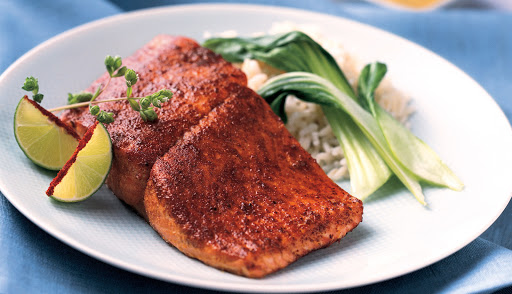 Blend all ingredients for Dry Sugar Rub. Generously coat one side of each Alaska Salmon fillet with mixture.
