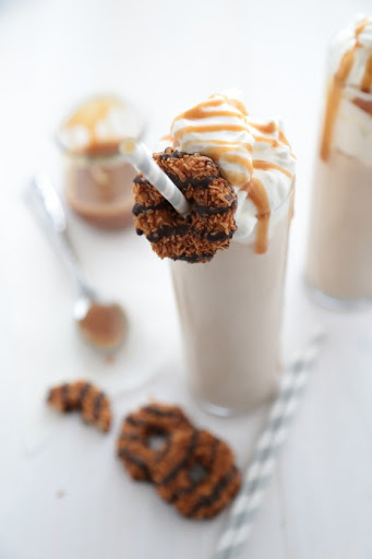 These milkshakes are full of your favorite Girl Scout Cookie flavors: coconut, chocolate, rum...wait, how'd that get in there?