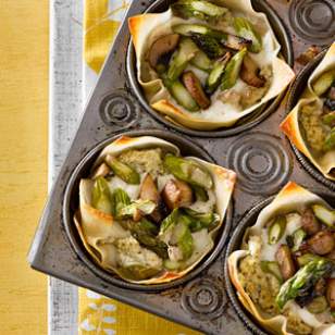 Although not conventional, wonton wrappers are the perfect stand-in for noodles in this muffin-tin mini lasagna recipe. Once you get the hang of making this healthy vegetarian lasagna recipe in your muffin tin, experiment with different fillings to suit your fancy.