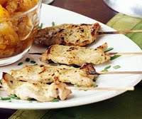 4. Place skewers on the rack of an uncovered grill directly over medium-hot coals. Grill for 7 to 8 minutes or until pork is slightly pink in center, turning once. (Or place skewers on the unheated rack of a broiler pan. Broil 5 to 6 inches from the heat for 7 to 8 minutes or until pork is slightly pink in center, turning once.) To serve, arrange skewers on a serving platter; serve with chutney.