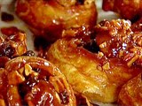 Bake for 30 minutes, until the sticky buns are golden to dark brown on top and firm to the touch. Be careful - they're hot! Allow to cool for 5 minutes only, invert the buns onto the parchment paper (ease the filling and pecans out onto the buns with a spoon) and cool completely.