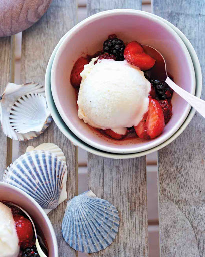 Lemon ice cream -- made with lemon zest and heavy cream -- makes a gorgeous pairing with summer berries.