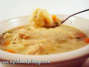 Heat the soup to boiling and drop teaspoonful amounts (the dumplings should be fairly small, they'll expand while cooking) of dumpling dough into the boiling soup, covering the entire surface of the soup (don't make more than one layer of dumplings). Reduce the heat to simmering, cover and let the dumplings cook for 15 minutes. Do not lift the lid of the pot while the dumplings cook.