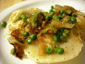 Pumpkin Ravioli with Peas and Caramelized Shallots