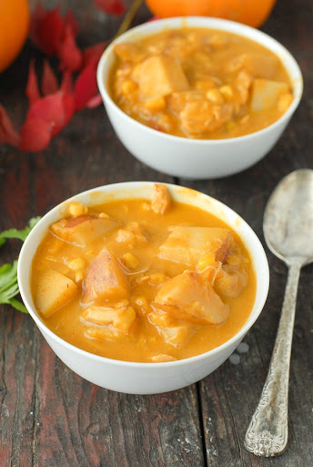 Slow Cooker Spicy Pumpkin Chicken Corn Chowder