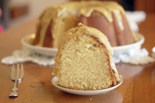 Pour into prepared pan and bake for 1 hour and 15 minutes or until a toothpick in inserted in the center of the cake comes out clean. Let cool for at least 30 minutes before inverting onto a plate.