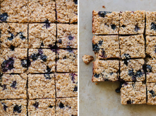 Fold through blueberries at the last second then transfer mixture to the slice tin, pressing down with the back of a spoon to even it out.