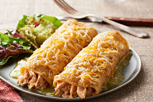 place in lightly greased baking pan, cover enchiladas with remaining sauce