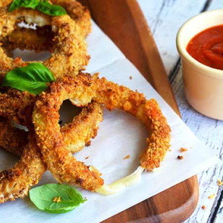 Mozzarella-Stuffed Crispy Baked Onion Rings