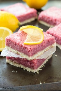 Combine sugar, eggs, flour, juices and salt in a large bowl with a whisk. Puree berries in a blender, food processor or Magic Bullet