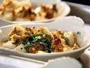 To make the topping, place the butter in the bowl of an electric mixer fitted with the paddle attachment (you can also use a hand mixer). With the mixer on low speed, add the garlic, shallot, prosciutto, parsley, lemon juice, Pernod, salt, and pepper and mix until combined. With the mixer still on low, add the olive oil slowly as though making mayonnaise, until combined. Fold the panko in with a rubber spatula and set aside.