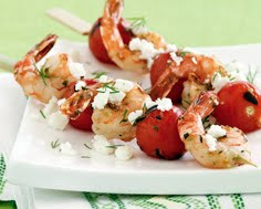 Plump, juicy, lemon-marinated shrimp are grilled to perfection then given a Greek spin with a sprinkling of fresh tomato, dill and feta.