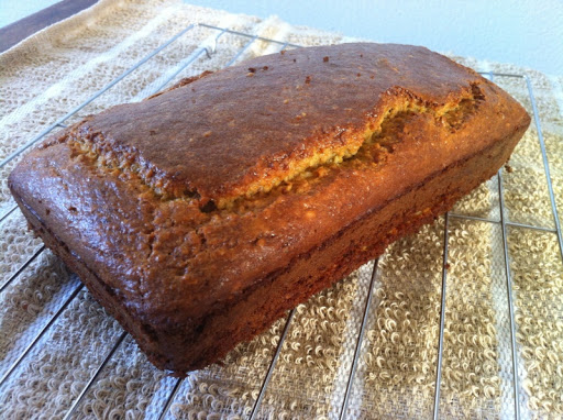 Mix all ingredients together until thoroughly combined, then pour into a greased standard sized loaf pan and bake at 300° for 45 minutes, or until a toothpick inserted into the bread’s center comes out clean.