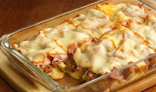 Luscious layers of chicken, ham and cheese stack up in a family-friendly dinner casserole.