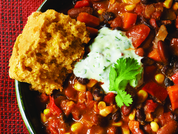 Add the corn, tomatoes, kidney beans, and black beans. Bring the chili to a boil, reduce the heat, cover, and simmer, stirring often, for at least 30 minutes.